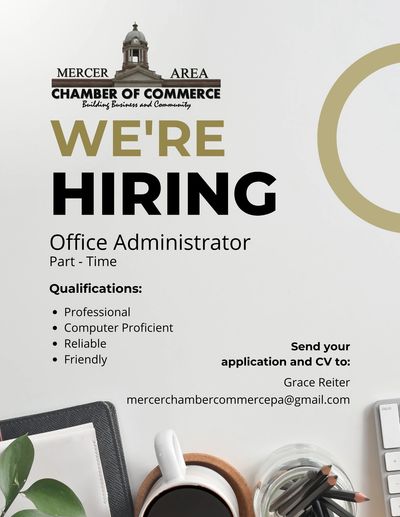 If interested, please email your resume and letter of interest detailing why you feel working at the Mercer Area Chamber of Commerce would be a great fit for you! mercerchambercommercepa@gmail.com